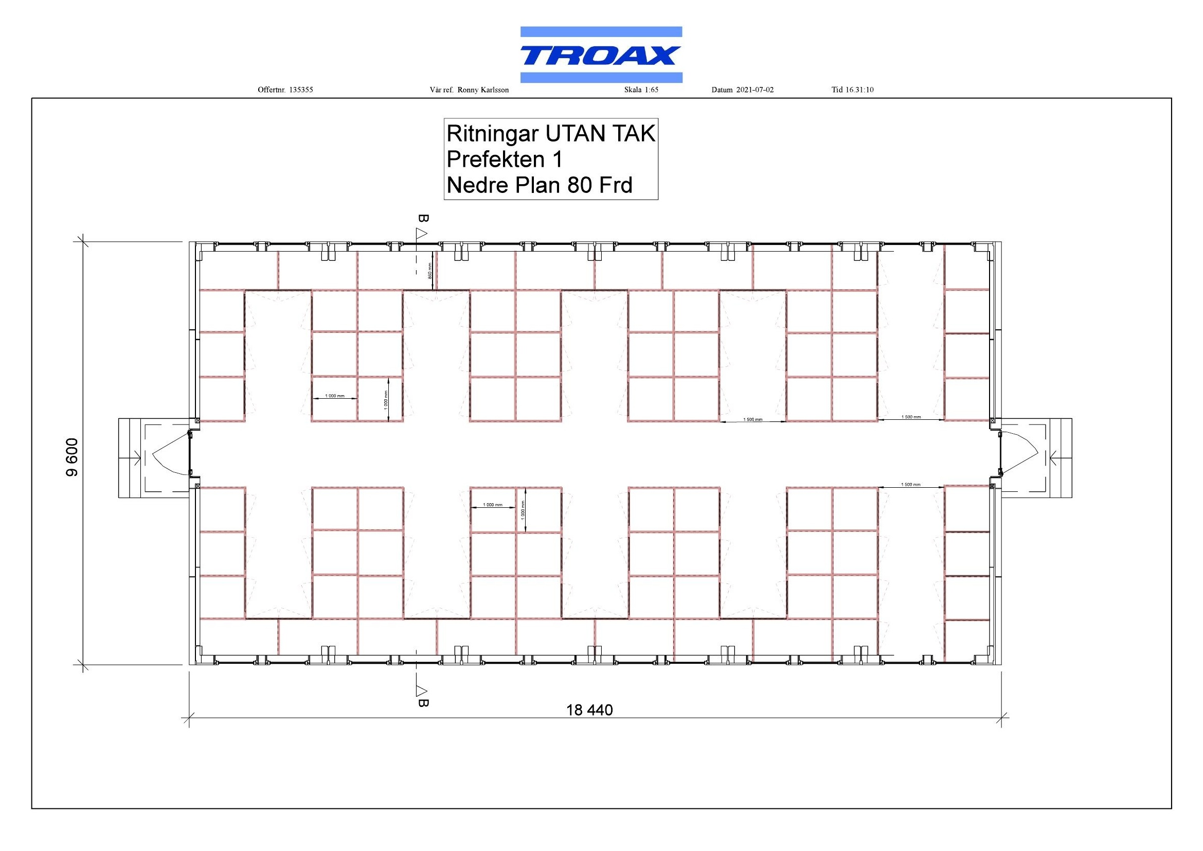 - Utrustning: Maxi-moduler uppbyggda med flera separata förrådsutrymmen enligt ritning. Förråden är ca 1,2 x 1,2 m och har tidigare använts av upp till 80 personer